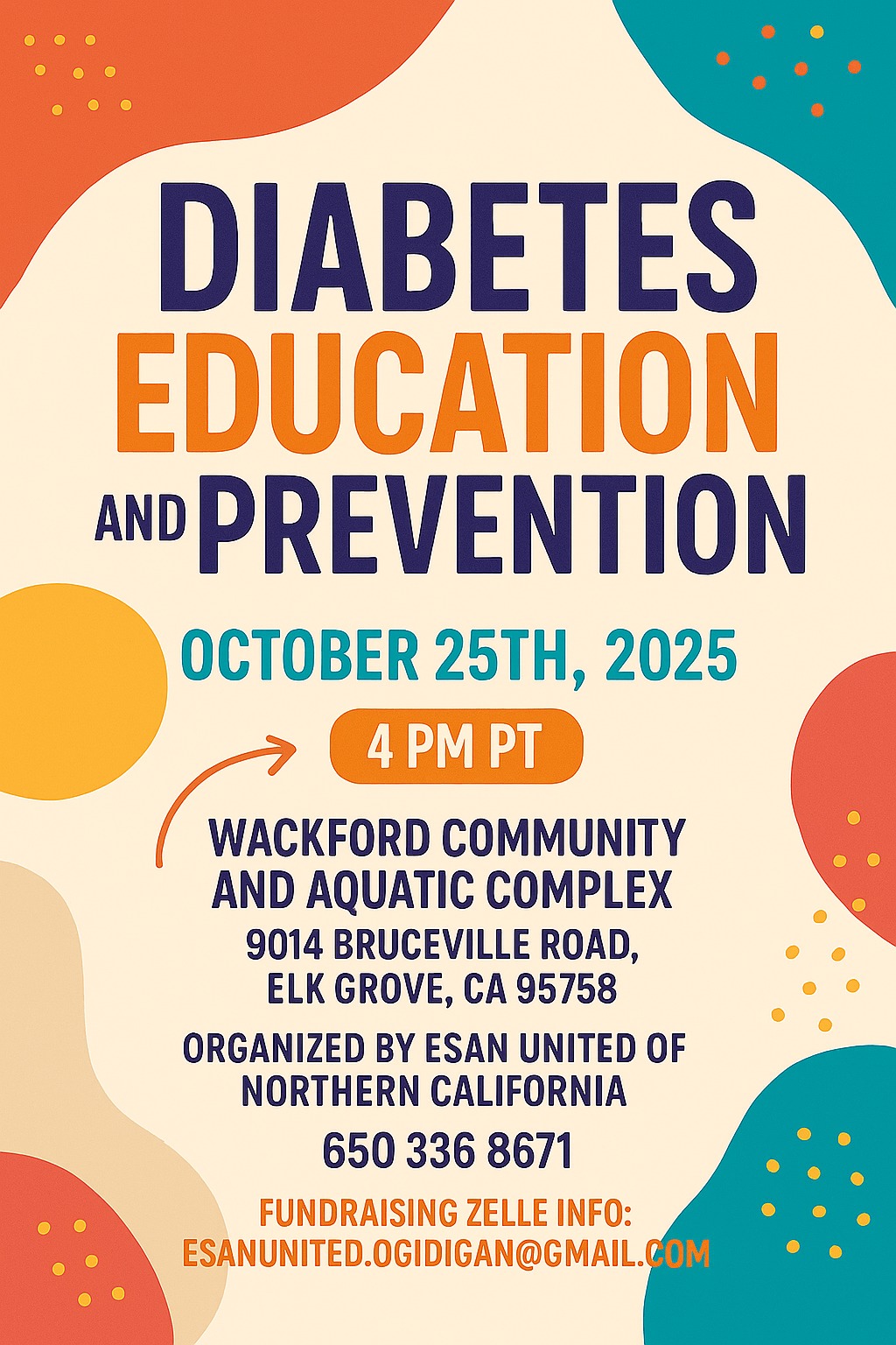 The Esan indigenes resident in Northern California formed this association to fulfill a need to unite all Esan natives and associates for the purpose of fostering socio-economic, cultural development and other interests of Esan people. The Association serves as a forum for unity, informationsharing, and avocacy on behalf of the common interests of Esan families, acting as the global meeting point for local and international network for all Esan indigenes in Northern California.